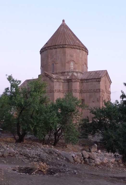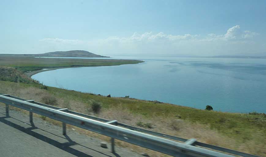 It was a long journey to Van, over a high mountain road pass close to the Iranian border. This was my first view of Lake Van, from the coach. We were all glad to get to our hotel in Van and to have a long-awaited hot shower. There was an evening excursion, by bus and boat to Akdamar Island. The sun was setting as we left the jetty lighting up the surrounding mountains with a roseate hue, as we headed towards it and the island. On the island is the 10th century Armenian Church of the Holy Cross, filled with ancient frescoes. Lake Van is a saline and soda lake where the only fish known to survive is the Pearl Mullet, found nowhere else in the world. I tried some for my evening meal when we got back to the jetty. It was pleasant enough, though rather bony.